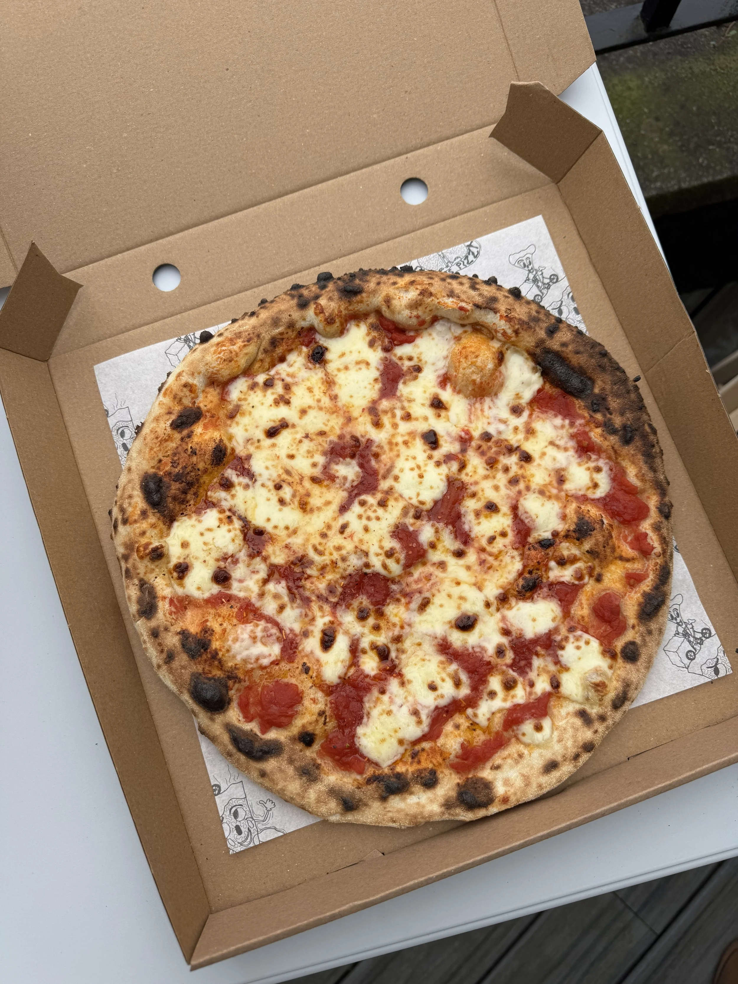 My dough is my own recipe, entirely homemade and, according my first ever customer at Food St Market in Chiswick, the base of “The best pizza he had ever had”!